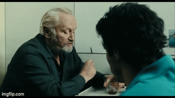 Final line of dialogue on the first part: The final line of dialouge happens two minutes before the end of the first half, as Malik envisions César Luciani (Niels Arestrup) speaking to him stating; “People look at you and see me. Otherwise what would they see? Can you tell me?
