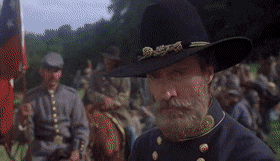 First line of dialogue on the second part: “Sam?” Confederate surgeon speaks to wounded solider and Confederate Lt. General. James Longstreet (Tom Berenger) at confederate camp medical