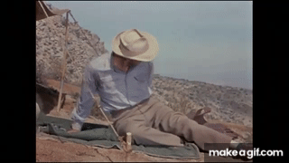Final line of dialogue on the first part: A radio DJ gives updates on the search for millionaire Donald Whitley Carson III (Robert Ryan). “There is no sign of rain anywhere this side of the Rockies. So you can leave your umbrellas home for a while,” the radio DJ states.