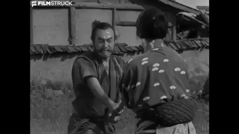 Final line of dialogue on the first part: “If you only think of yourself, you’ll only destroy yourself. From this day forward, anyone caught doing that…” Kambei speaks to the villagers, then walks away.